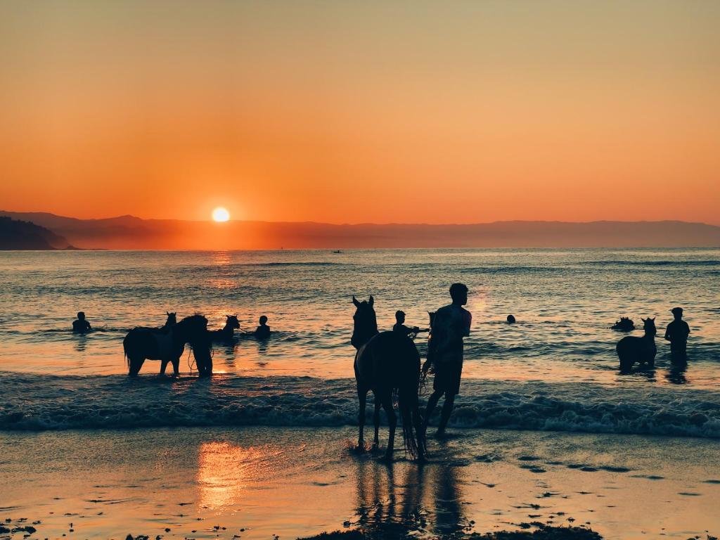 Enjoy the sunset from Gili Trawangan’s western shore, with views of Mount Agung in the distance.